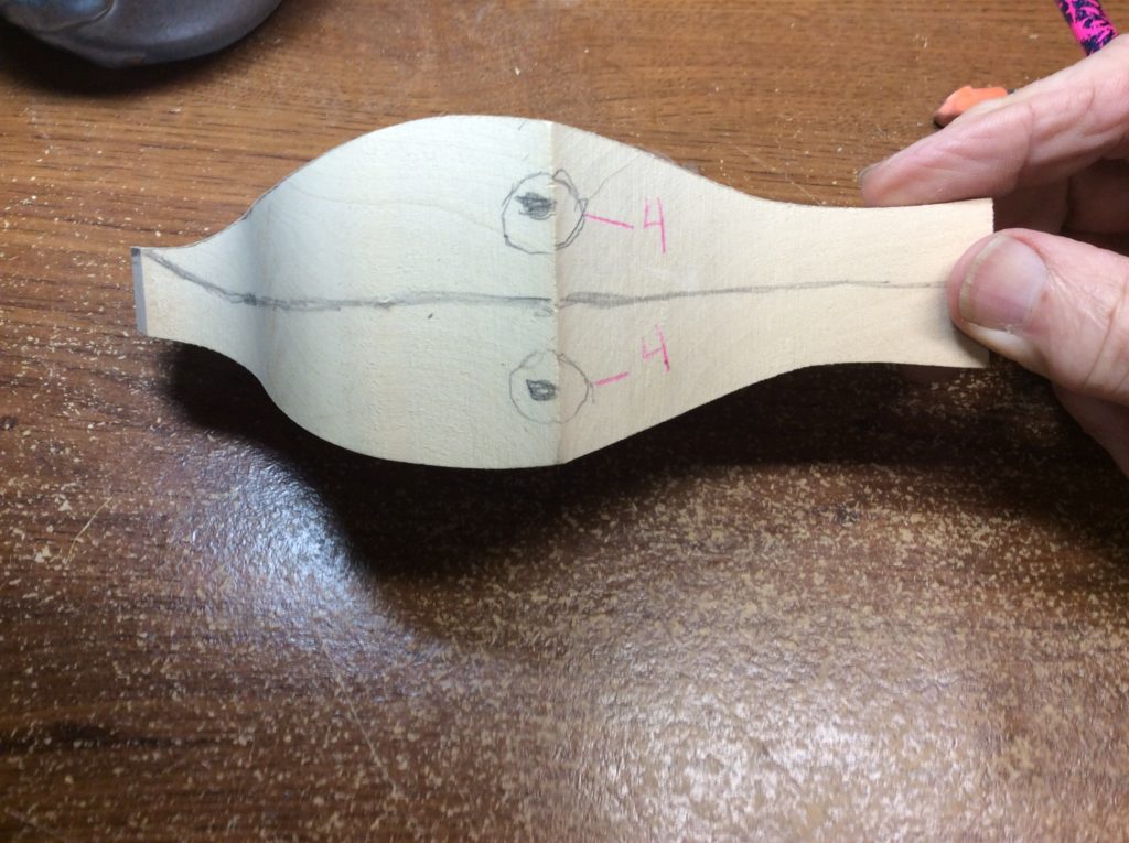 Measure from the end of the tail to mark on the primary wing tips. Mark the extra wood to remove from the top of the tail